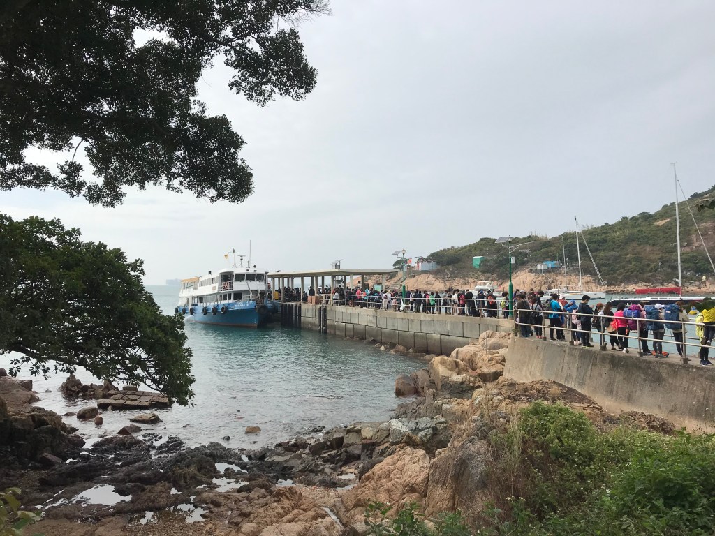 每天來往赤柱卜公碼頭和蒲台島的船只有固定的幾個班次。好在來往中環和赤柱的巴士班次不少,也有小巴。來到中環交易廣場巴士總站,排在6號線的人已經很多了,也說明離下一班開出的時間不遠了。